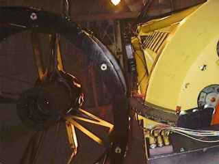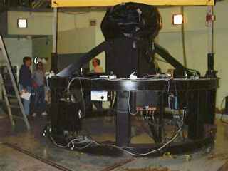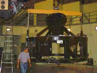 The topend ring in it's operational form is seen on the ground and as it is lifted to the top of the 3 meter Shane telescope.