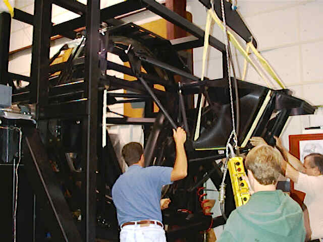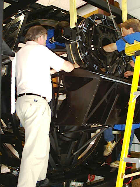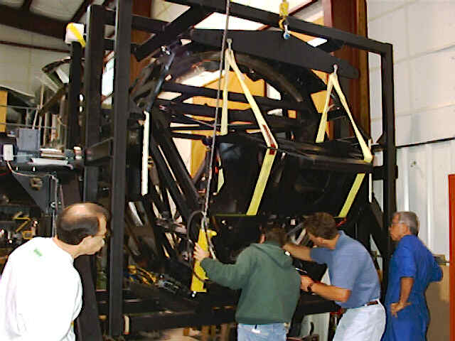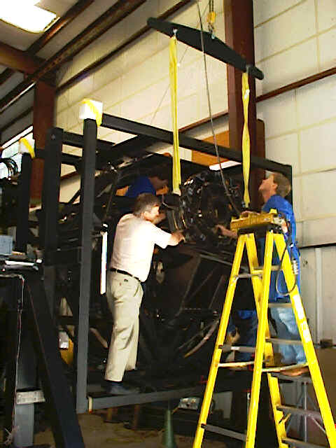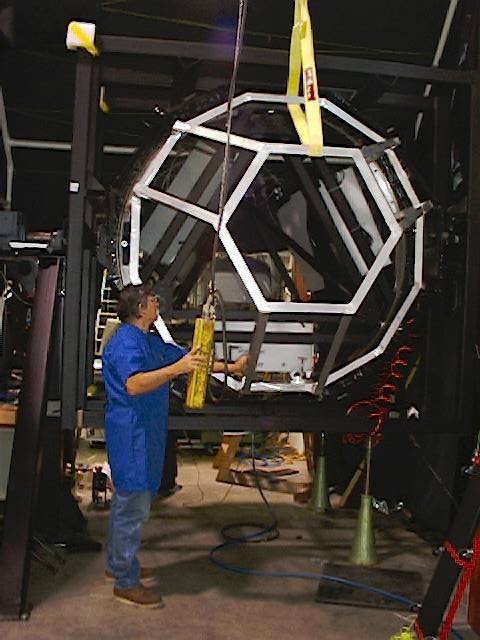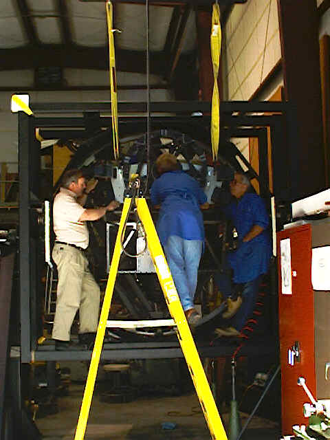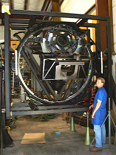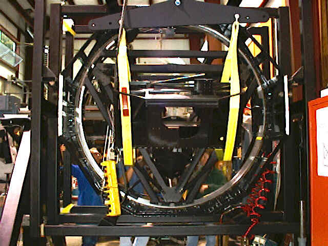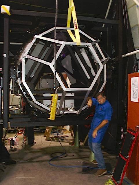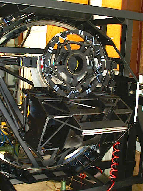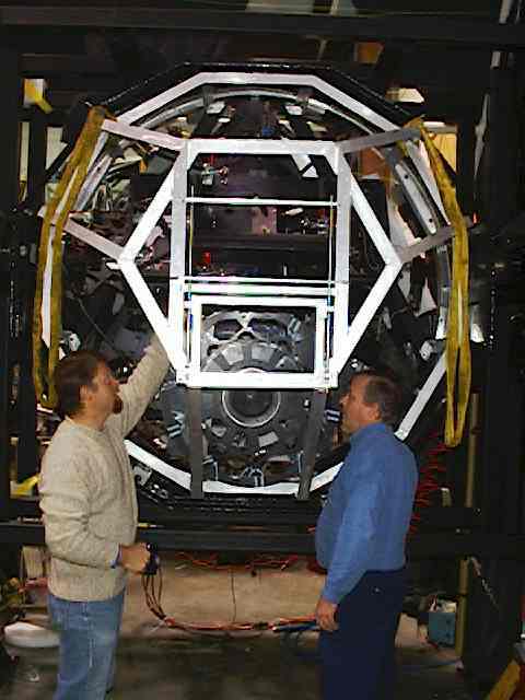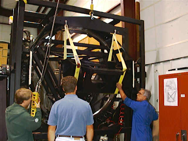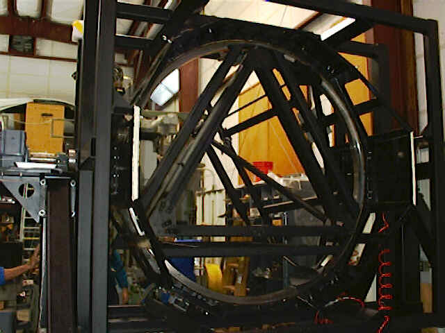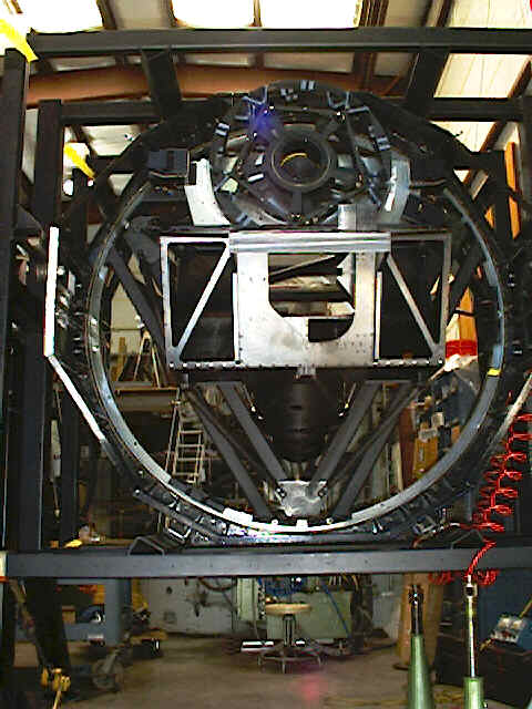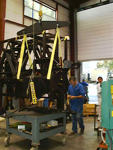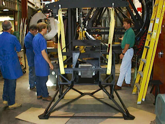 The instrument is being assembled in the 'highbay' portion of the UCO/Lick instrument shop.