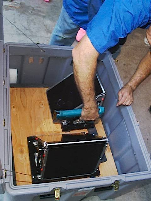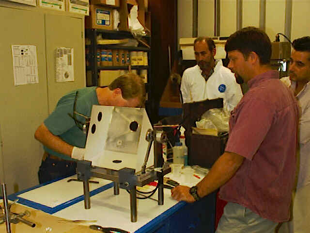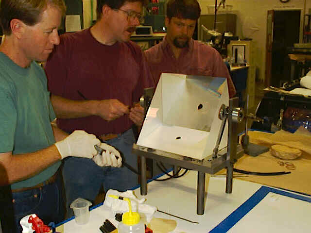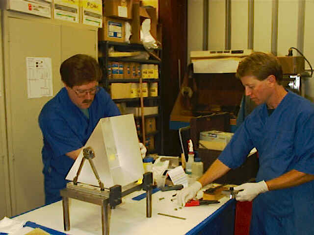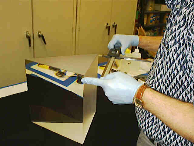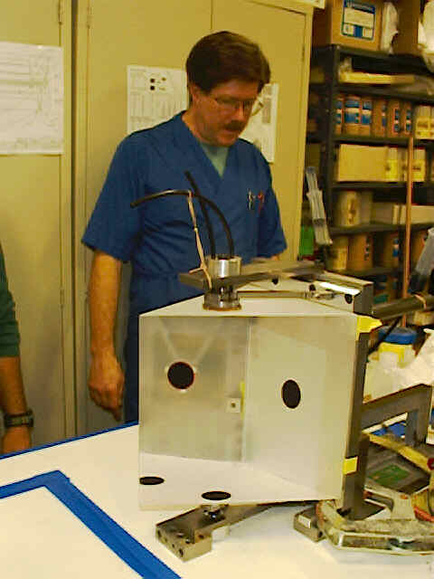 dummy prism is an aluminum mockup, filled with concrete to simulate the